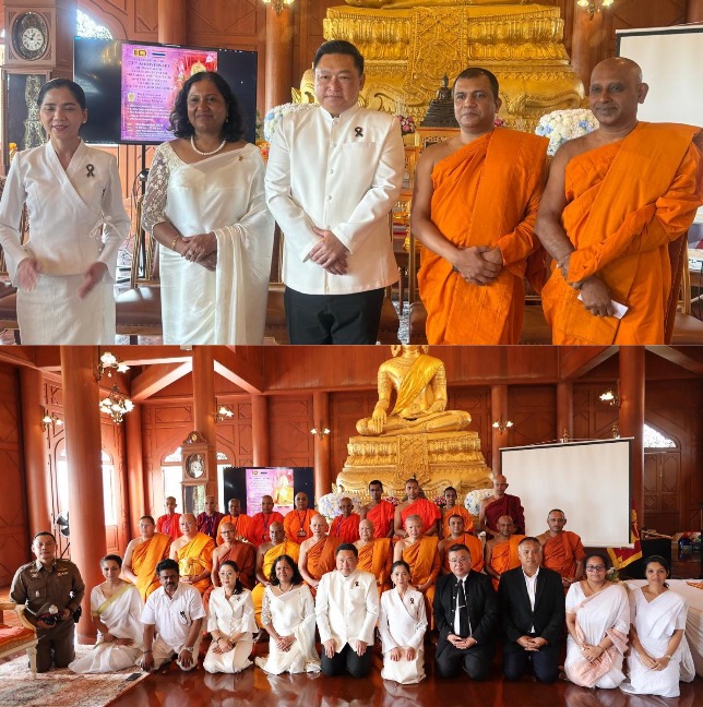 The Embassy and Permanent Mission of Sri Lanka in Thailand, under the guidance of H E Wijayanthi Edirisinghe, Ambassador of Sri Lanka to the Kingdom of Thailand organized a special religious commemorative ceremony at Wat Vajiradhammarama, Ayutthaya, to mark the 70th anniversary of diplomatic relations between Sri Lanka and Thailand on 21 November 2025. The event also honoured the centuries-old Buddhist ties that have long connected the two nations.