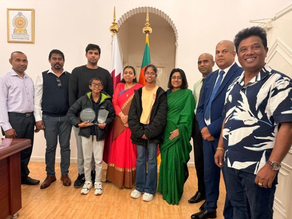 The Embassy extended its best wishes to Taavi Samaraweera and Muthuli Welathanthrige for more success in future competitions and appreciated their efforts in bringing pride to Sri Lanka during their tournament participation in Qatar.