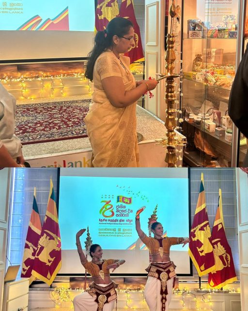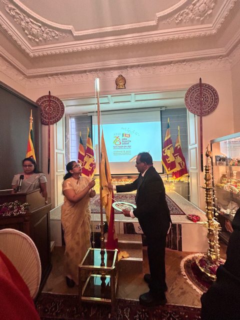 The celebrations commenced with the hoisting of the National Flag by Rekha Gunasekera, Ambassador of Sri Lanka to the Netherlands, followed by the singing of the National Anthem and the lighting of the traditional oil lamp, in keeping with Sri Lankan customs and traditions.