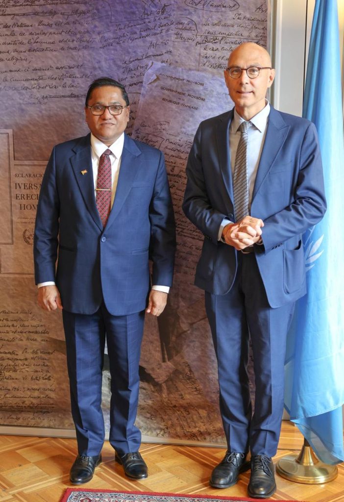 The Minister also met the UN High Commissioner for Human Rights Volker Türk where the discussion focused around the cooperation and assistance that the UN can provide to the Government in taking forward the measures undertaken within the country to promote and protect human rights. In this regard the need to address all human rights, including the economic, social civil and political rights, of all Sri Lankans, was emphasized. Minister Herath provided further updates on issues referred to in his statement to the Council, reiterating the need for time and space for the Government to carry them through to completion.