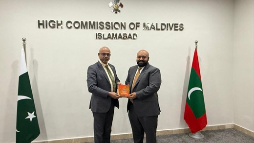 The High Commissioner of Sri Lanka in Islamabad, Fred Senevirathne, paid a courtesy call on the High Commissioner of the Maldives in Islamabad, Mohamed Thoha, at the Maldivian High Commission on 08 December 2025.