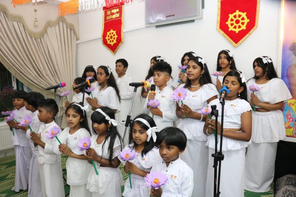 With the intention of depicting the spirit of ‘Poson’ exactly as it is celebrated in Sri Lanka, the program continued with devotional songs sung by Sri Lankan Children in Jordan.