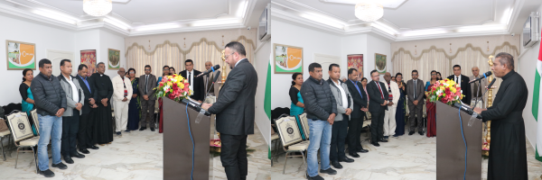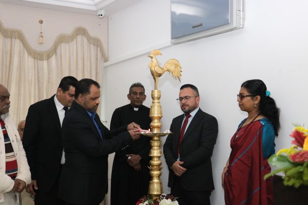 After that, the lighting of the traditional oil lamp took place with the participation of Chargé d'Affaires a.i. and community representatives, which was followed by multi-religious observances representing Buddhism, Hinduism, Islam, and Christianity, invoking blessings for the country and all Sri Lankans. Following the religious observances, the Independence Day Messages of the President, the Prime Minister, and the Minister of Foreign Affairs, Foreign Employment, and Tourism were read out in Sinhala, Tamil, and English.