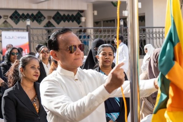 The event commenced with the hoisting of the National Flag by the Ambassador of Sri Lanka to the Kingdom of Saudi Arabia, Ameer Ajwad. At the same time the students of the Sri Lankan International School in Riyadh sang the National Anthem. A two-minute silence in remembrance of all patriots who sacrificed their lives for the motherland was observed.