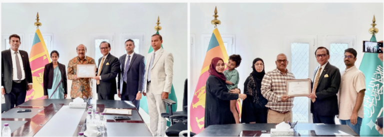 The felicitation is part of the Embassy’s ongoing initiative, launched in July 2024, to acknowledge senior Sri Lankan migrant workers who have rendered exceptional services to both Sri Lanka and Saudi Arabia over the years. To date, the Embassy has honoured six such workers from diverse professional backgrounds.