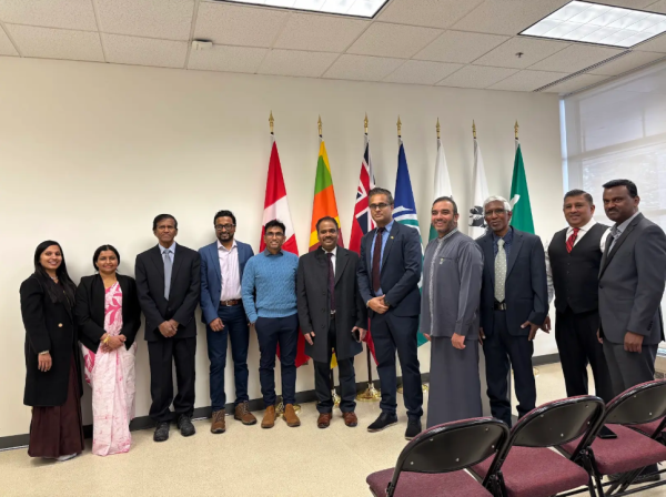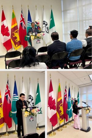 The ceremony commenced with the hoisting of the Sri Lankan National Flag by the Acting High Commissioner Mr. Kiritharan Kumarasamy, accompanied by the traditional Magul Bera and the Sri Lankan National Anthem, followed by the Canadian National Anthem. A two-minute silence was observed in honour of Sri Lanka’s national heroes and the victims of Cyclone Ditwah.