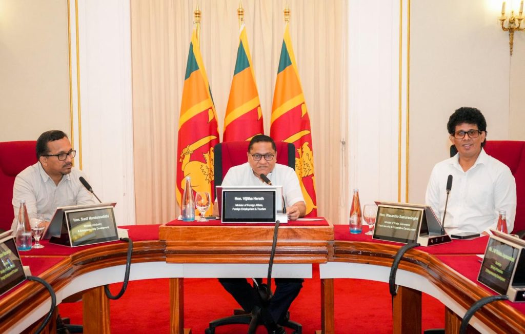 The Minister of Foreign Affairs, Vijitha Herath, along with the Minister of Industry, Sunil Handunneththi, and Minister of Trade, Wasantha Samarasinghe, launched an integrated mechanism to enhance collaboration between Sri Lanka’s overseas Missions and national institutions. Joined by Ministry Secretaries and agency heads, the initiative aimed to revitalize the country’s trade and investment agenda through coordinated efforts. The session on 16 September, attended by all Heads of Mission and Post, served as a platform to share key policy directives, practical proposals, and focused ideas.