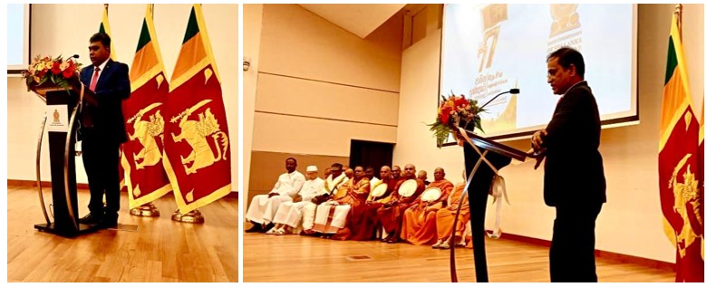 The Independence Day messages of the President, the Prime Minister, and the Minister of Foreign Affairs, Foreign Employment, and Tourism of Sri Lanka were read out at the ceremony and copies of the messages were made available in all three languages for the attendees.