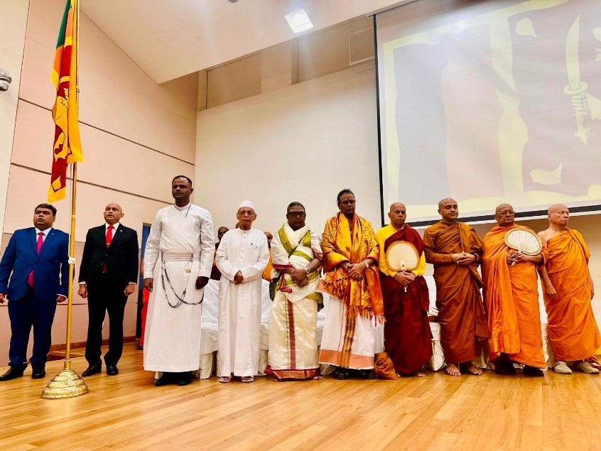 The formal ceremony commenced with the hoisting of the National Flag of Sri Lanka by the High Commissioner of Sri Lanka in Singapore, Senarath Dissanayake, followed by the singing of the national anthem. A two-minute silence was observed in honor of those who sacrificed their lives for the nation. Ven. Buddhist Monks and religious dignitaries of the Hindu, Islamic, and Catholic faiths conducted religious observances, invoking blessings on the Government and the people of Sri Lanka.
