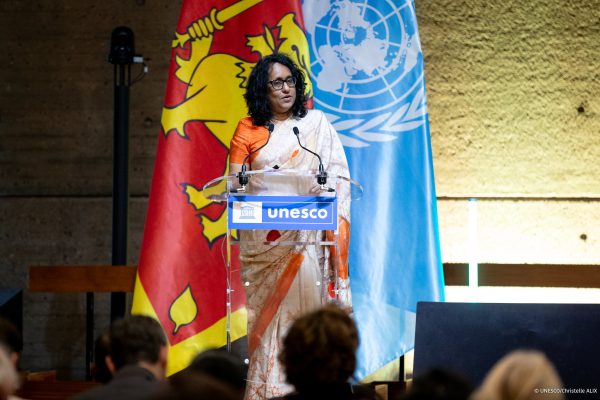 At a reception hosted by the Ambassador and Permanent Delegation of Sri Lanka to UNESCO, in the presence of the Director-General, the Prime Minister underscored the importance of Sri Lanka’s 75-year partnership with UNESCO, and reaffirmed the country’s commitment to further strengthening this collaboration in key areas of cooperation. She did so in her capacity as the Minister of Education, Chairperson of the Sri Lanka National Commission for UNESCO, and Chairperson of the Central Cultural Fund.
