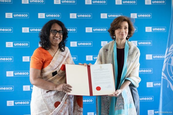 The Prime Minister also formally handed over to the Director-General Sri Lanka’s Instrument of Accession to the 2005 UNESCO Convention on the Protection and Promotion of the Diversity of Cultural Expressions, demonstrating the country’s commitment to promoting cultural diversity, artistic freedom, and international collaboration. Ambassadors and Permanent Delegates accredited to UNESCO, senior representation of the UNESCO Secretariat including Director and team of the World Heritage Centre, the President of the France – Sri Lanka Friendship Group in the French National Assembly, expert participants of the Conference, academics, scholars and senior officials of the French Ministry for Europe and Foreign Affairs attended the reception and conveyed their warm greetings and felicitations to the Prime Minister.