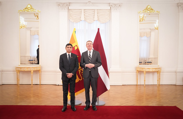Ambassador of Sri Lanka to Latvia, Kapila Fonseka presented credentials to the President of the Republic of Latvia, Edgars Rinkevics at the Presidential Palace in Latvia’s capital Riga last week. Presenting the credentials, the Ambassador conveyed greetings of President Anura Kumara Disanayaka and expressed his commitment to enhance bilateral relations with Latvia. President Rinkevics, while warmly welcoming the new Ambassador, appreciated the warm and cordial relations existing between the two countries that mark the 30th anniversary of bilateral relations in 2026.