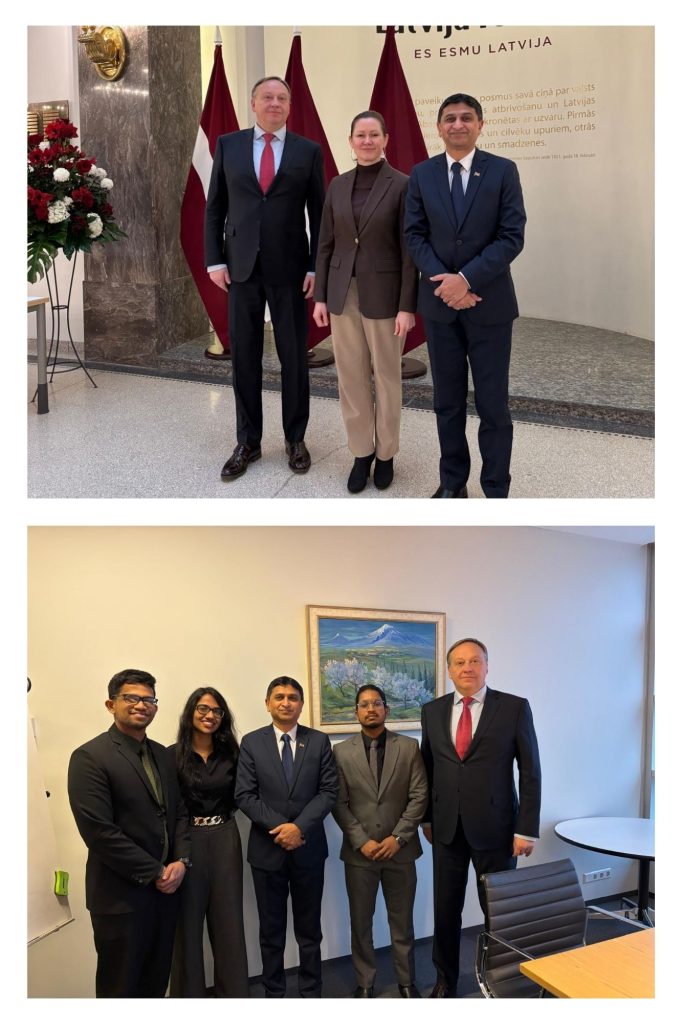 Ambassador Fonseka was warmly welcomed by the Government of the Republic of Latvia in his visit to Riga where he met with a number of Latvian dignitaries and officials including Foreign Minister Baiba Braze; Minister of Culture, Agnese Lace; officials of the Latvian Foreign Ministry including the State Secretary of the Ministry of Foreign Affairs, Andsejs Vilumsons; Deputy State Secretary for Economic Relations, Ivita Burmistre and Head of the Directorate for Bilateral Relations, Katarina Platere. During these meetings the Ambassador discussed a range of subjects, particularly following up on the first bilateral consultations between Sri Lanka and Latvia held in Colombo last year. The areas covered included the fast growing tourist arrivals from Latvia to Sri Lanka that has seen over 120% year on year growth in 2024, trade relations, bilateral agreements as well as the Sri Lankan students in Latvia. Both parties agreed to closely cooperate in enhancing these relations and to hold the second round of bilateral consultations early.