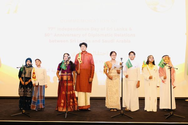Traditional cultural performances were staged during the event: the popular Saudi poet Mohammed bin Salem bin Jalban Alkhatani recited an Arabic poem while Sri Lankan children performed a specially composed song. The popular Saudi Arabic calligrapher Ahmed Hussein Araqib wrote the names of the guests in Arabic Diwani calligraphy and presented them to the guests. Moreover, Sri Lanka’s attractive tourist destinations were screened.