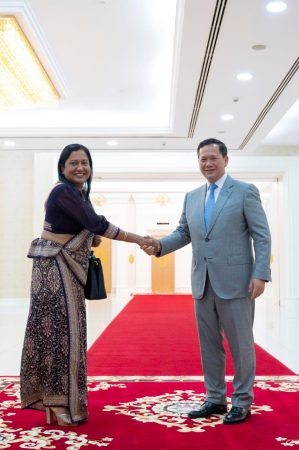 Ambassador of Sri Lanka to Cambodia, Wijayanthi Edirisinghe paid a courtesy call on Prime Minister of the Kingdom of Cambodia, Samdech Moha Borvor Thipadei Hun Munet at the Peace Palace in Phnom Penh, following her presentation of credentials to the King of Cambodia, Preah Bat Samdech Preah Boromneath Norodom Sihamoni.