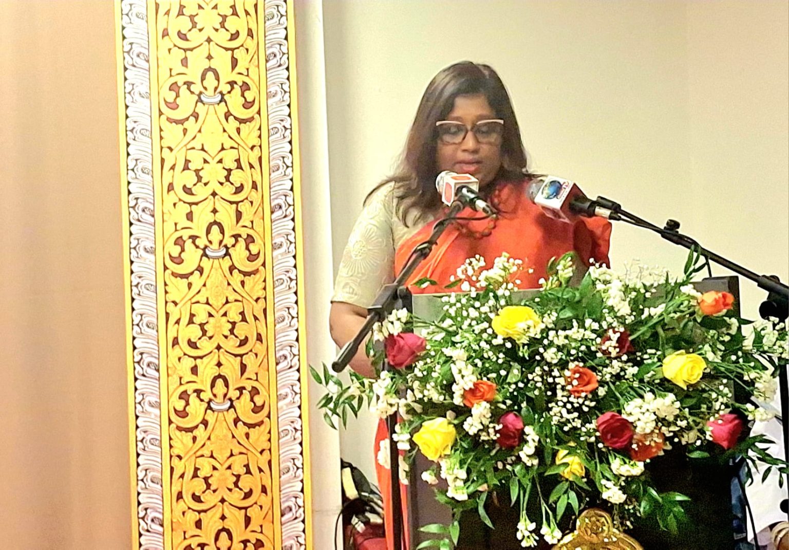 The official ceremony commenced with the hoisting of the national flag and the singing of the national anthem, followed by a two-minute silence in remembrance of all those who sacrificed their lives for the motherland. The traditional oil lamp was lit by the Consul General, officers representing the staff and children representing Sinhalese, Tamil, Muslim and Burgher ethnicities of the Sri Lankan expatriate community.