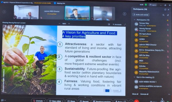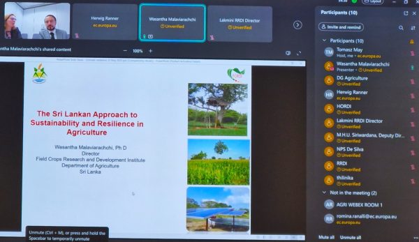 Sri Lanka Embassy in Belgium, the Directorate General for Agriculture and Rural Development of the European Commission (DG AGRI) and the Department of Agriculture of Sri Lanka, initiated a dialogue on ‘Environmentally Friendly Agricultural Management’ on 23 May 2025. The officials of the DG AGRI and the officials from several institutions of the Department of Agriculture of Sri Lanka attended the first session of the virtual dialogue.