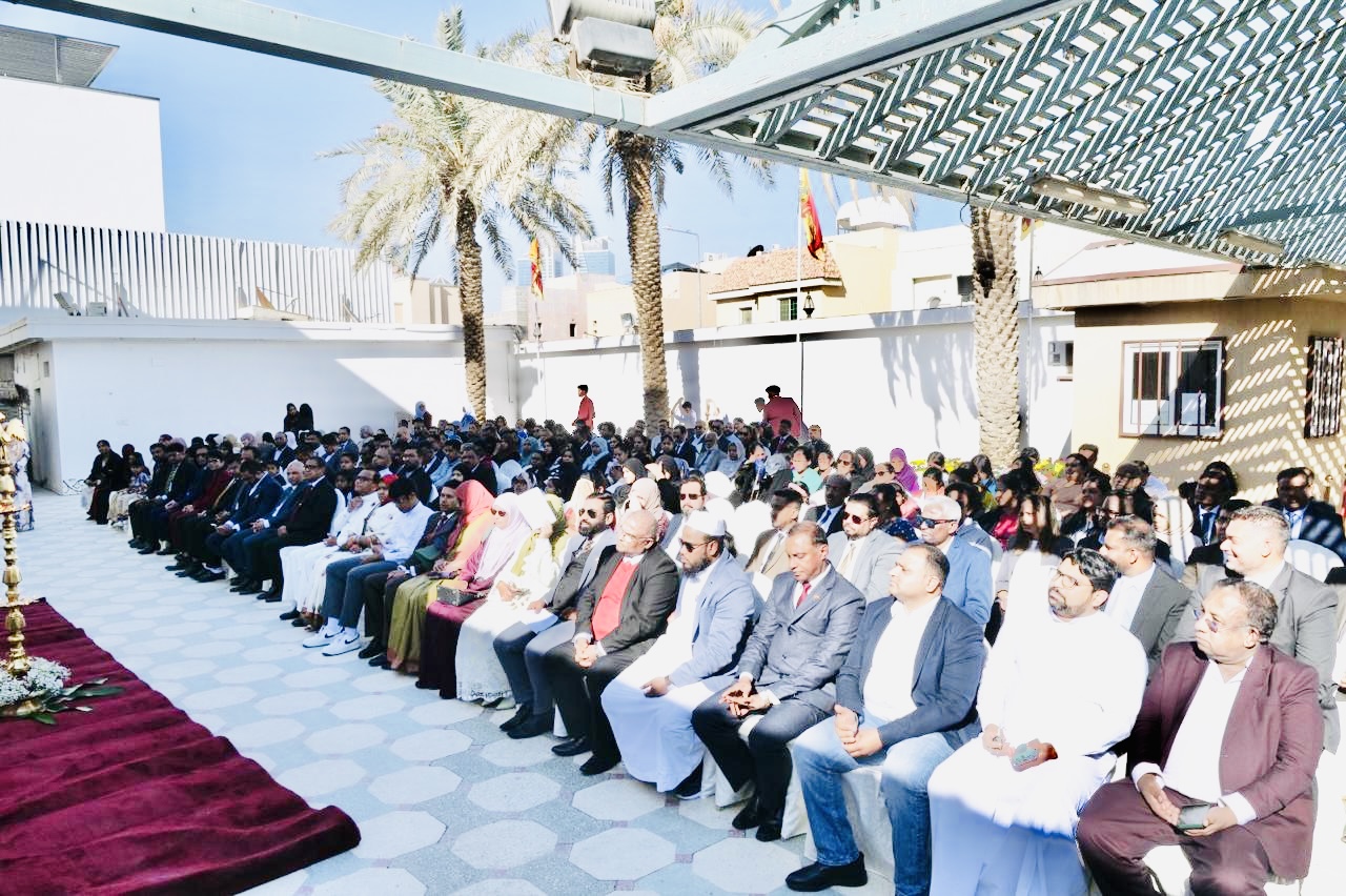 The event commenced with the hoisting of the national flag by the Ambassador of Sri Lanka to the Kingdom of Saudi Arabia, Omar Lebbe Ameer Ajwad to the sound of magulbera, followed by the singing of the national anthem by the students of the Sri Lankan International School in Riyadh.