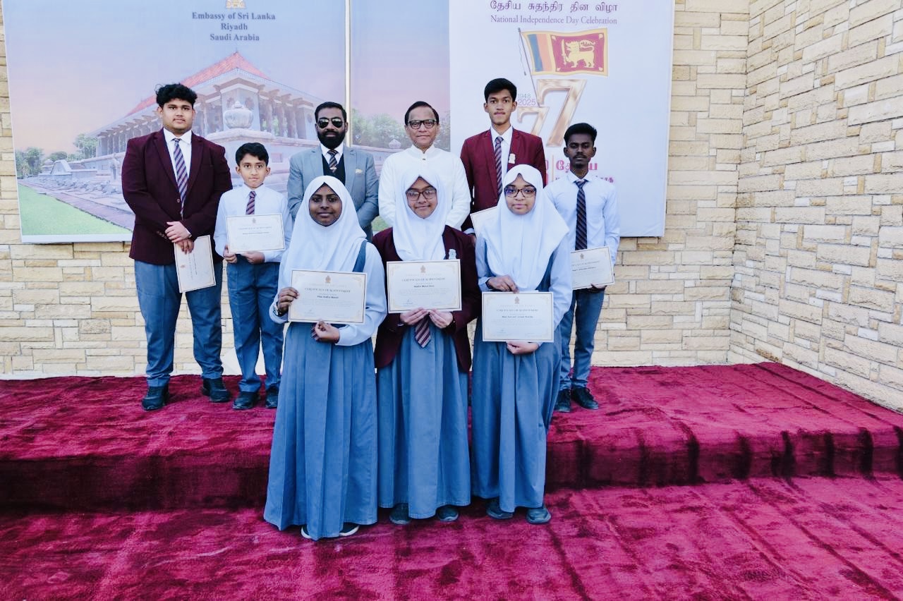During the event, the Ambassador presented awards to the students of Sri Lanka International Schools in Riyadh, Jeddah and Dammam who won the art, essay writing and logo designing competitions conducted by the Embassy to mark the 50th anniversary of diplomatic relations between Sri Lanka and Saudi Arabia.