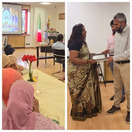 In her remarks, while welcoming the gathering, Consul General of Sri Lanka in Milan, Dilani Weerakoon noted that Eid-ul-Adha serves as a reminder of the profound lessons of sacrifice while encouraging to embody the values of sacrifice in the daily lives, such as scarification of one’s own desires, ego and material possessions. She also commended the contribution of Sri Lankan Muslim community living in northern Italy for their collective efforts in social, community and religious work towards the welfare and wellbeing of all Sri Lankans. The Consul General also emphasised the vision of the Government of Sri Lanka to build a nation in which all the communities live harmoniously through equality and mutual respect.