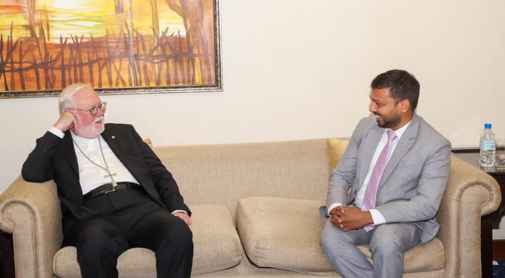 අගරදගුරු ගැලගර් හිමිපාණන්, විදේශ කටයුතු, විදේශ රැකියා සහ සංචාරක අමාත්ය විජිත හේරත් සමඟ ද්විපාර්ශ්වික සාකච්ඡා ද පැවැත්වීය. ශ්රී ලංකාව සහ ශුද්ධාසනය අතර ශක්තිමත් සහ අඛණ්ඩ සහයෝගීතාව මෙම හමුවේදී යළිත් තහවුරු වූ අතර, Caritas Sri Lanka–SEDEC හරහා සපයනු ලබන මානුෂීය ආධාර, ප්රතිසන්ධාන ක්රියාවලිය සහ ශ්රී ලංකාවේ බහු වාර්ගික සහ බහු ආගමික සමාජය තුළ විවිධ ඇදහිලි පදනම් කරගත් සහජීවනය ප්රවර්ධනය කිරීම සම්බන්ධයෙන් අවධාරණය කෙරිණි. මත්ද්රව්ය ජාවාරම, ත්රස්තවාදය සහ අන්තවාදයට එරෙහිව සටන් කිරීම සඳහා ඒකාබද්ධ උත්සාහයන්හි වැදගත්කම දෙපාර්ශ්වයම අවධාරණය කළහ.