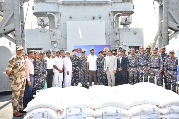 At the request of the Deputy High Commissioner, the Government of Tamil Nadu formally dispatched 950 metric tonnes of relief items from both Chennai and Tuticorin ports to support the people of Sri Lanka affected by Cyclone Ditwah. The consignment included essential items such as Dhal, Sugar, Milk Powder, Towels, Sarees, and other life-support supplies.