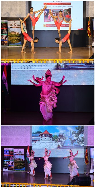 A Sri Lankan dancing troupe from Karunadasa Olaboduwa Dancing Academy performed Sri Lankan traditional dances, captivating the audience with their skill and artistry. Somaiya University and the Maya Somaiya School of Music and Performing Arts delivered traditional Indian classical music performances, a drama on women empowerment and demonstrated yoga asanas. Moreover, a video presentation showcasing Sri Lanka's cultural heritage and the Ramayana Trail with a focus on tourism was also screened.