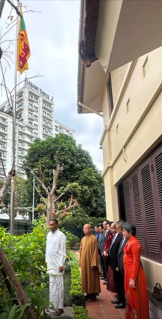 The ceremony commenced with the hoisting of the flag and the playing of traditional Magul Bera (Sri Lankan ceremonial drums), followed by the singing of the National Anthems of both Sri Lanka and Vietnam. The proceedings also featured religious observances representing Sri Lanka's diverse faiths including Buddhist, Hindu, Muslim, and Catholic prayers, highlighting the country's commitment to interfaith harmony.